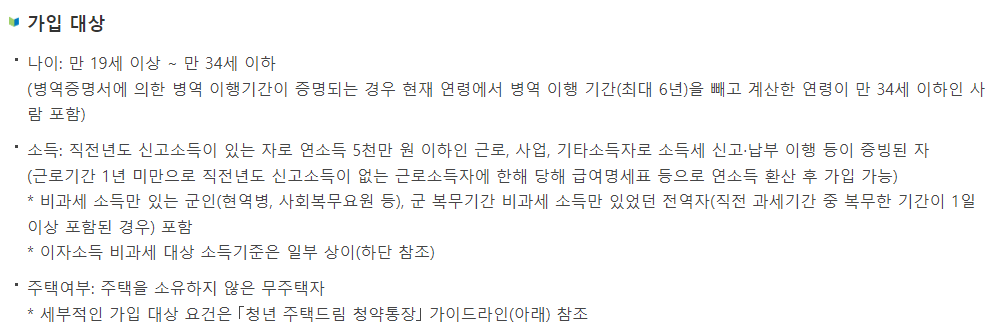 청년주택드림청약통장 가입 대상은 아래와 같습니다.