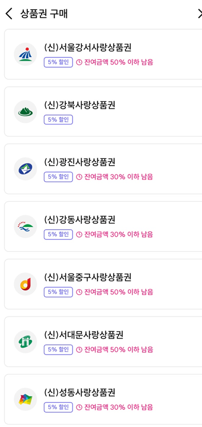 이번 추석에도 서울사랑상품권이 1,2차로 나뉘어 발행이 되었는데요. 할인율이 줄어서인지 예전보다는 덜 빠르게 소진이 되는 것 같더라고요. 글을 작성하는 지금도 아직 남아있어서 필요하신 분들은 구매해서 사용해 보시면 좋을 것 같아요.