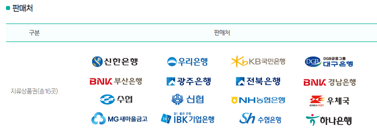 소상공인시장진흥공단 홈페이지에 보면 지류상품권은 총 16곳에서 구매 가능하다고 나와 있습니다.