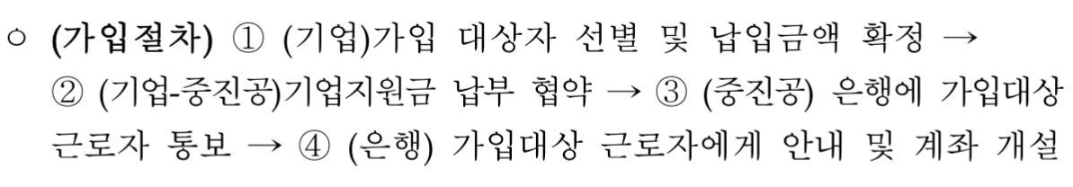 이 상품에 가입하기 위해서는 근로자와 기업주가 사전에 월 납입금액 등에 대한 협의 후 중진공에 해당 사실을 통보하고 IBK기업은행이나 하나은행과 같은 협약은행에 방문하여 가입하면 된다고 합니다.
