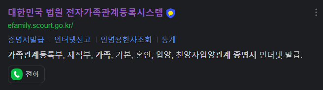 우선 다음이나 네이버에서 '가족관계신청서'를 검색하면 대한민국 법원 전자가족관계등록시스템이라는 사이트가 나옵니다.