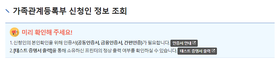 들어가 보면 미리 인증서가 필요하다고 나오고 테스트 증명서 출력도 가능하다고 나오네요.^^