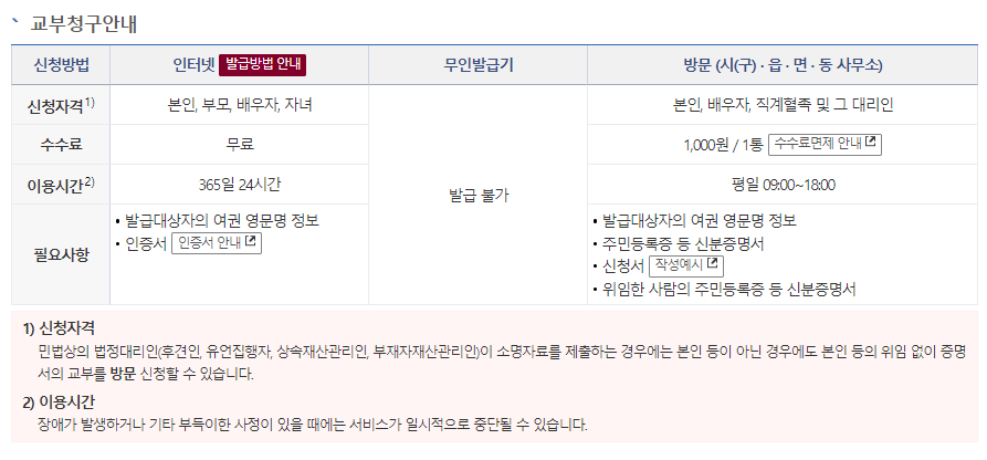 신청 수수료는 증명서 1통당 1,000원이며 인터넷으로 발급받을 때는 무료라고 하네요. ^^