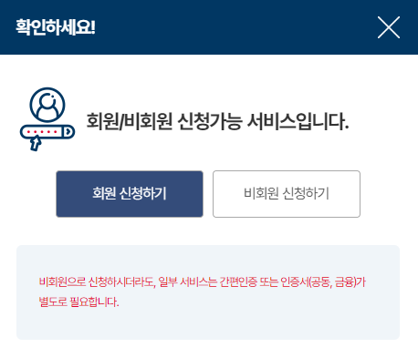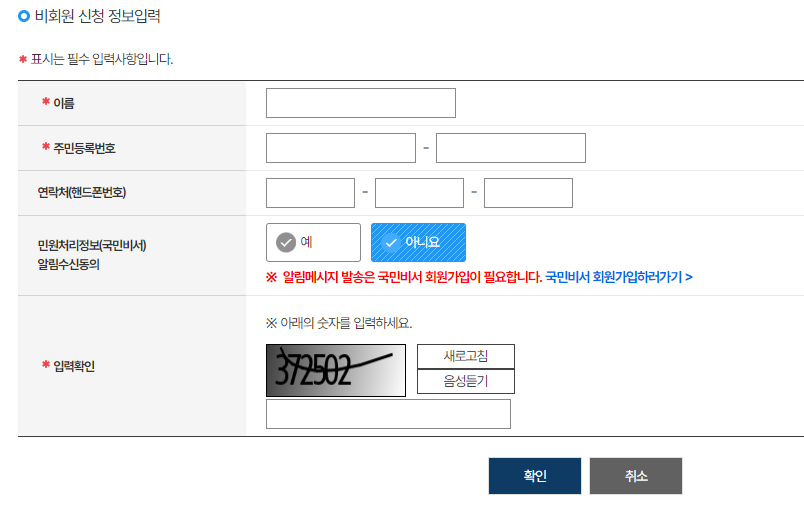 다만 비회원으로 신청하더라도 인증이 별도로 필요하니 본인 인증은 꼭 필요한 것 같습니다.