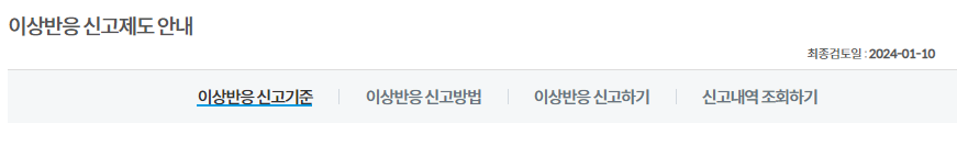 매우 드물게 건강에 중대한 영향을 미칠 수 있는 이상반응과 같은 경우 이상반응 신고도 가능하다고 하며 홈페이지에 자세히 설명되어 있습니다.