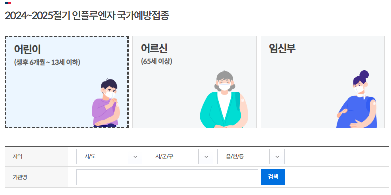 질병관리청 예방접종사이트에 보면 2024년 독감 무료 접종 대상자는 크게 세 그룹으로 나와 있습니다.