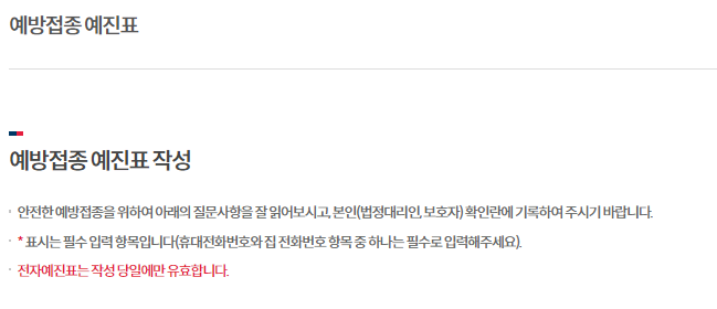 PC 및 모바일로 모두 작성 가능하다고 하며 작성 당일에만 유효하다고 하니 접종 당일날 미리 작성하고 방문하면 좋을 것 같습니다.