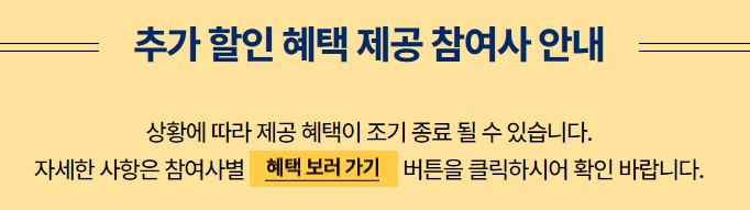 참여사마다 제공하는 추가 할인 혜택이 있을 수 있다고 하며 추가 할인 혜택 참여사 또한 한국관광공사 홈페이지에 아주 잘 정리되어 있습니다.