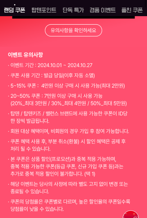 탑텐 1010 DAY - 2024.10.01~2024.10.27