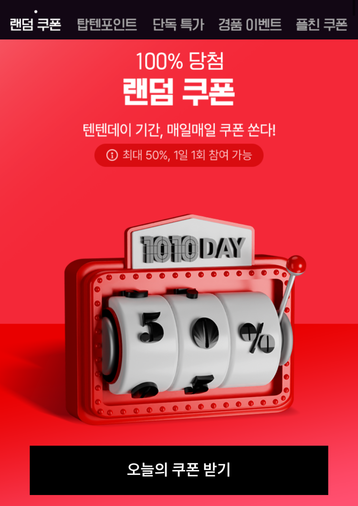 혹시 1+1 상품 할인에 50% 쿠폰 할인까지 받으실 수 있는 탑텐 텐텐데이 알고 계신가요?