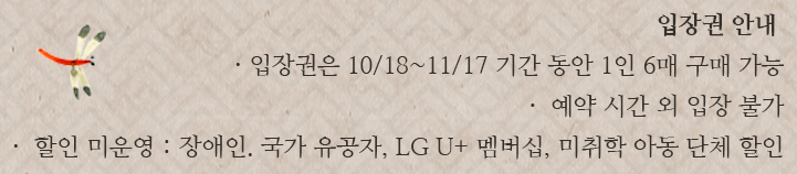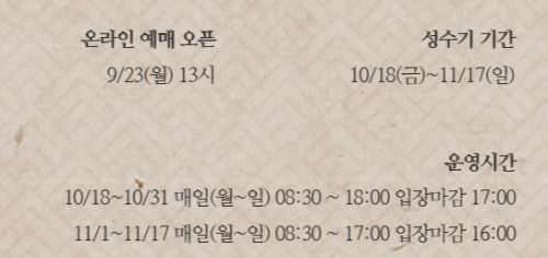 11/1~11/17 매일(월~일) 08:30~17:00 입장마감 16:00