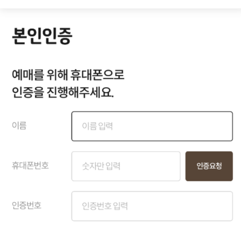 예매를 위해서는 휴대폰 인증을 하고 들어가야 하는데요.