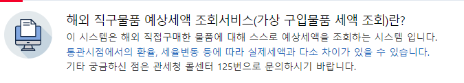 오늘은 해외직구물품 예상세액을 쉽게 조회할 수 있는 조회시스템에 대해 포스팅해보려고 합니다.
