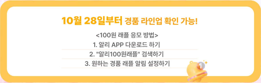 앱 다운 및 알리 100원 래플 검색 후 원하는 경품의 알림을 설정하면 된다고 합니다.