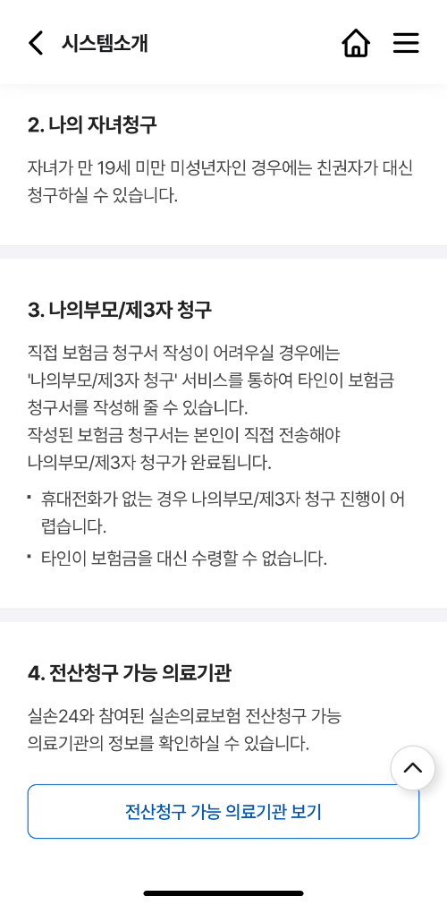 또한 위에도 적었지만 모든 의료기관이 참여하고 있는 것이 아니라 전산청구 가능한 의료기관을 확인해 보시면 좋을 것 같습니다.