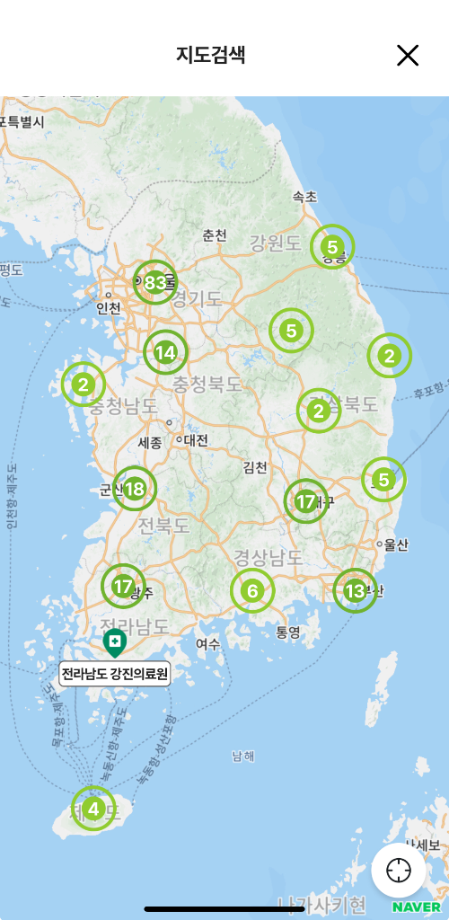 참여병원 또한 나와 있어서 지도로 확인해 보았습니다.