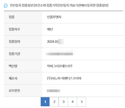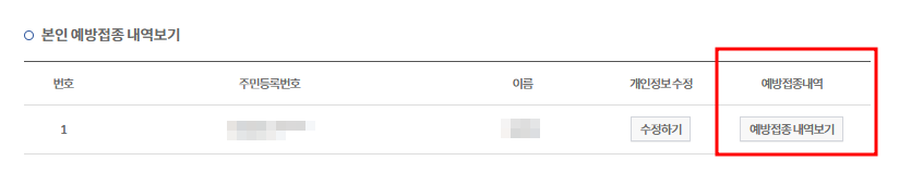 접종내역 조회를 들어가면 본인 및 자녀의 예방접종 내역 조회가 가능합니다.