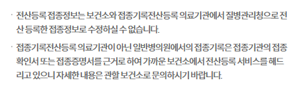 접종기록전산등록 의료기관이 아닌 일반병의원에서의 접종기록은 바로 접종 등록이 안 될 수도 있나 봅니다.