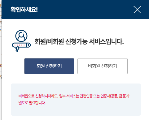 비회원으로 신청하더라도 인증이 필요하다고 합니다.