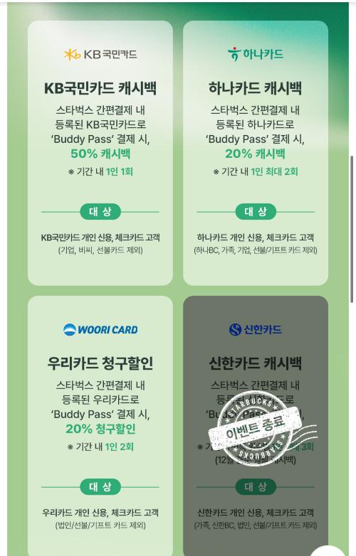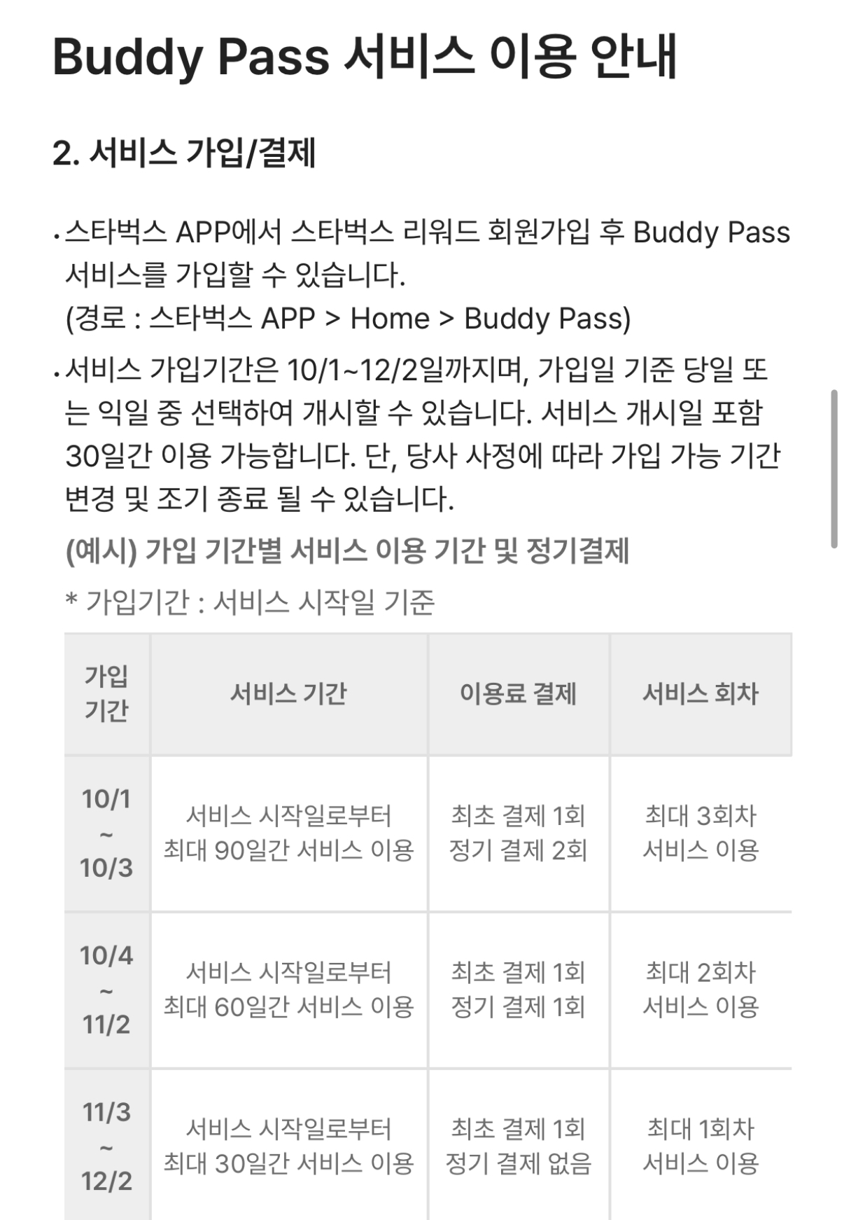 더 자세한 내용은 스타벅스 APP 버디패스 이용안내를 보시면 확인 가능하니 꼭 미리 중요한 내용은 확인해 보시고 가입해 보시면 좋을 것 같습니다.