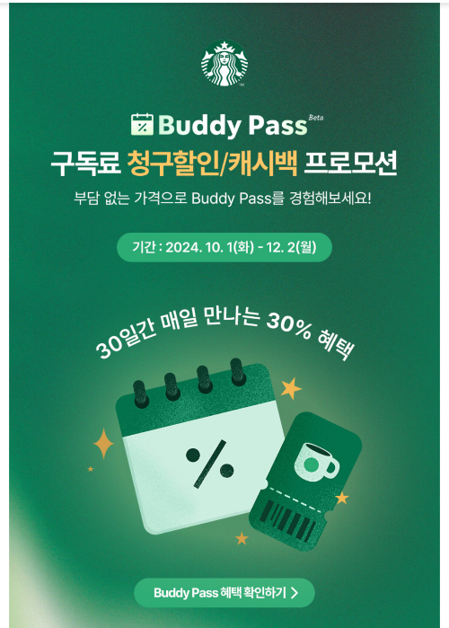 스타벅스 커피를 할인받을 수 있는 구독 서비스 버디 패스 (Buddy Pass)를 가입해서 사용해 보았는데요.