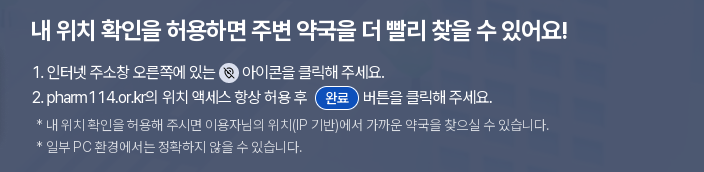 내 위치 확인을 허용하면 주변 약국을 더 빨리 찾을 수 있다고 합니다.