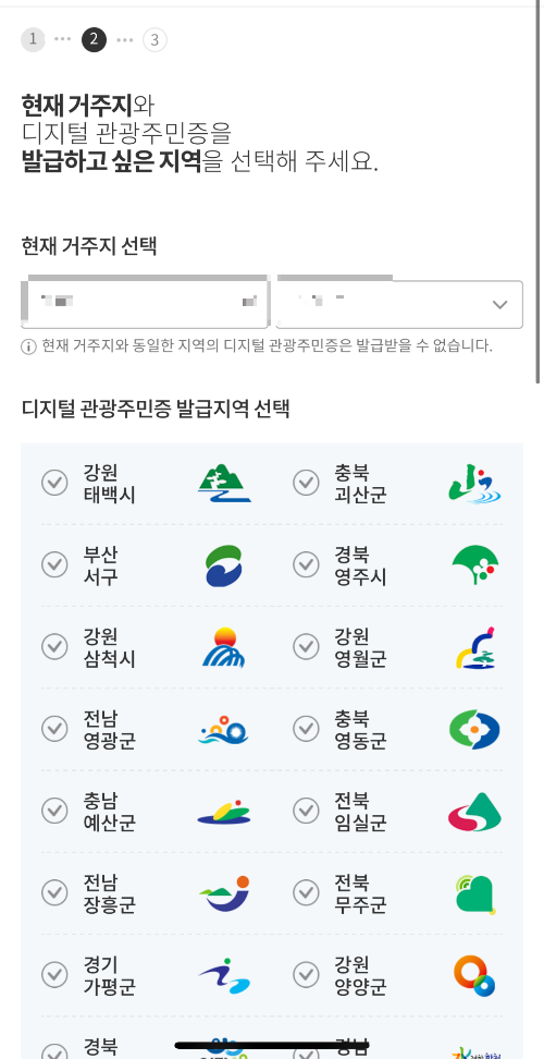 먼저 여행할 지역을 선택하고 간단한 절차에 따라 본인 확인을 완료하면 QR 코드 형식의 디지털 관광주민증이 발급됩니다.