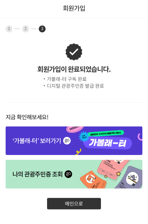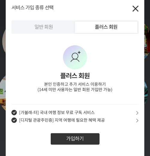 일반 회원으로 가입하게 되면 디지털 관광주민증 서비스를 이용할 수 없다고 합니다.