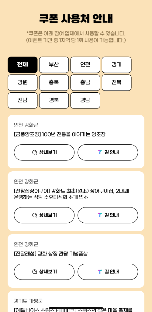 지역별 추가 이벤트와 같은 경우도 홈페이지에 자세히 나와 있으니 참고해 보셨으면 좋겠습니다.